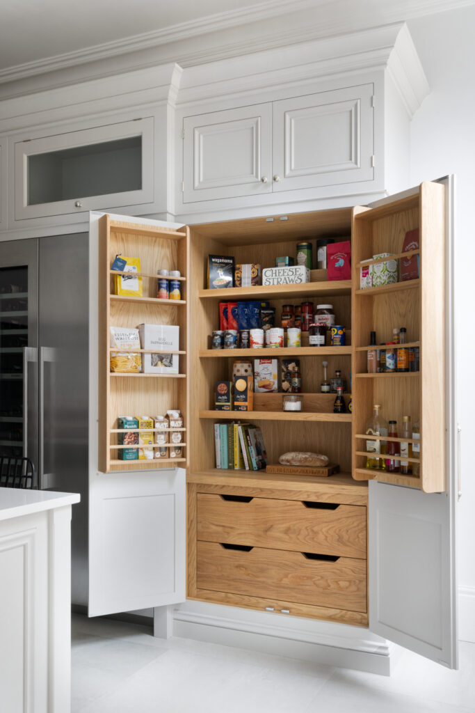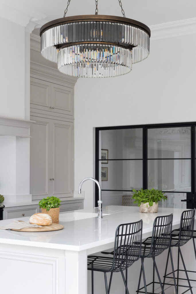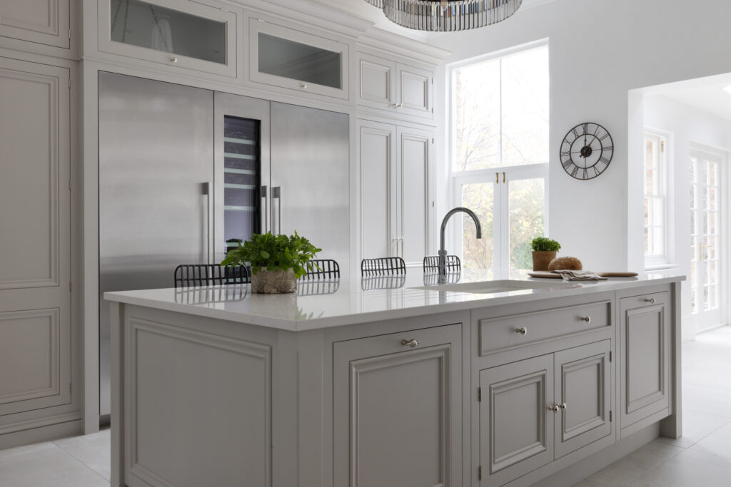 By mixing natural wood, soft grey joinery, and industrial steel, we created a space that feels sophisticated but relaxed. It’s a kitchen that works hard but knows how to hide its secrets.