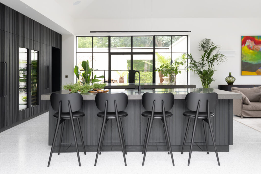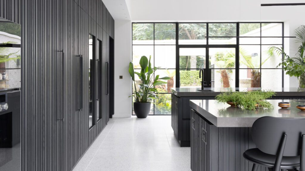 On paper, a black kitchen in a country estate sounds like a risk. In reality, the texture of the slatted ash stops it feeling cold. It walks the fine line between a modern showpiece and a warm family home without tripping over.