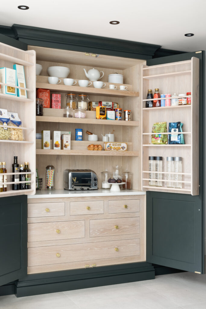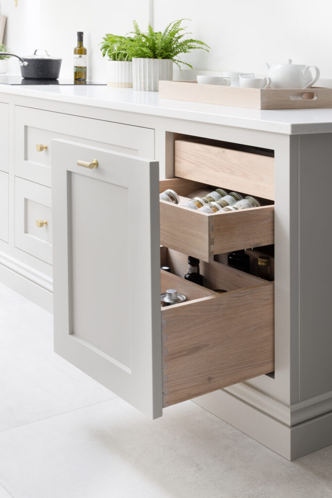 We used deep pan drawers to make cookware instantly accessible.