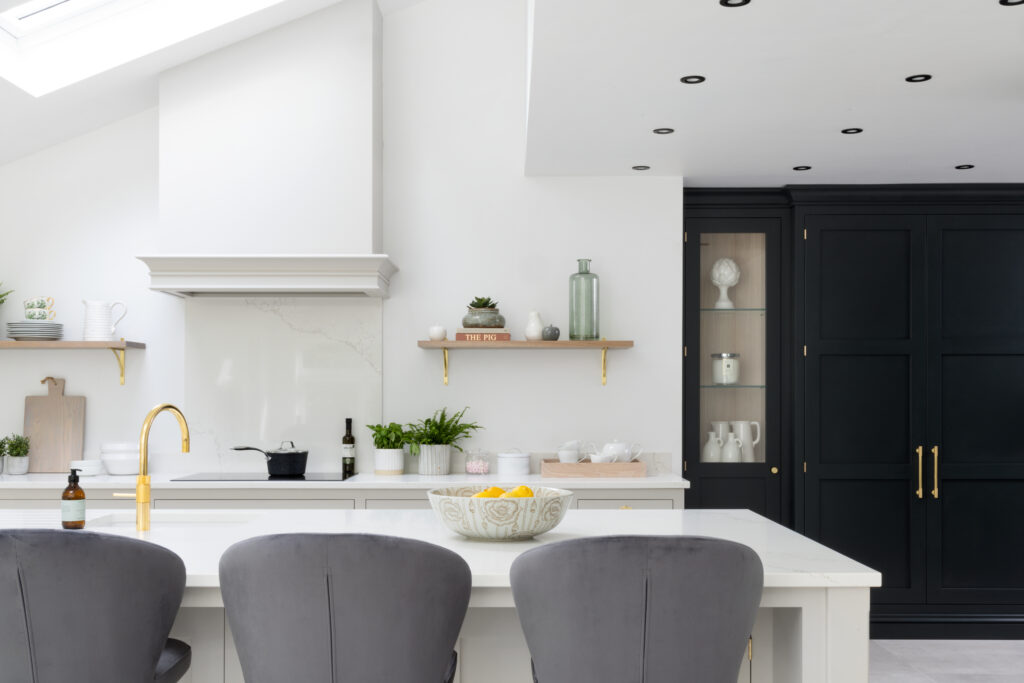 We turned a disjointed space into a unified kitchen. By embracing the split levels and using high-contrast colour blocking, we created a kitchen that feels architectural, but relaxed.