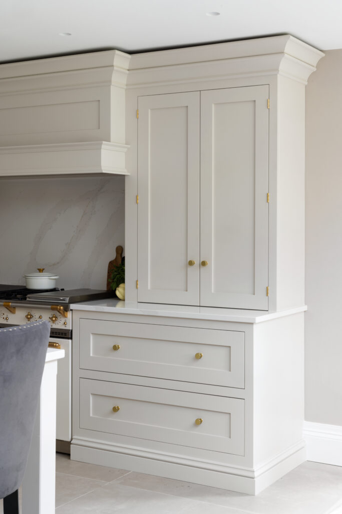 This is for serious cooks. We centered the design around a heavyweight Lacanche range and a full suite of Gaggenau appliances. With a 100-bottle wine conditioner and a dedicated drinks cabinet, it’s ready for a party at a moment’s notice.