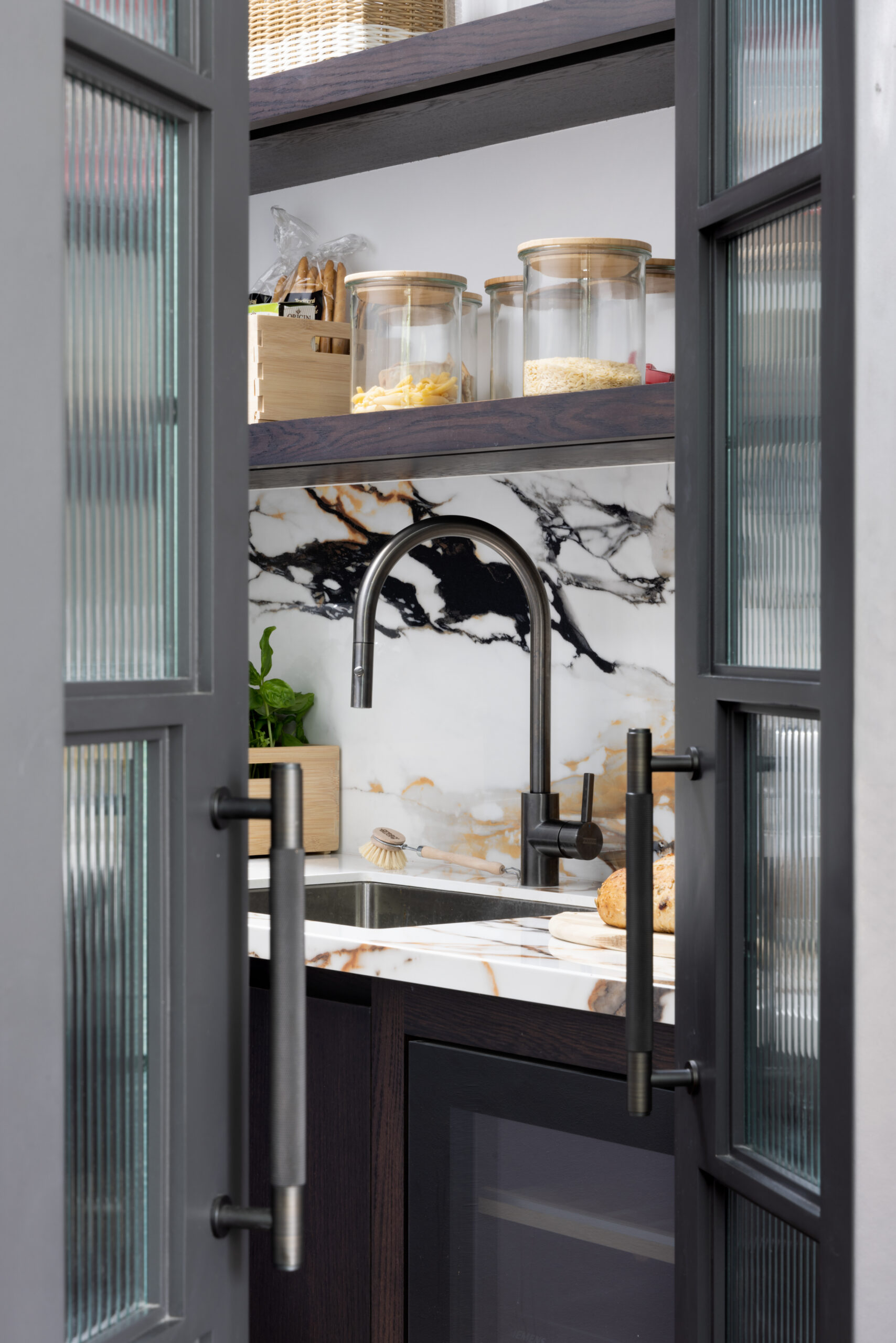 The secret to a minimalist kitchen isn’t owning less stuff, it’s having a better place to put it. From glazed display cabinets to hidden prep kitchens, these pantries are architectural sleight of hand. They keep the mess backstage so the main stage stays pristine. Whether it’s a kitchen within a kitchen or a beautifully lit larder for your dry goods, these spaces prove that storage can be the most exciting part of the design.